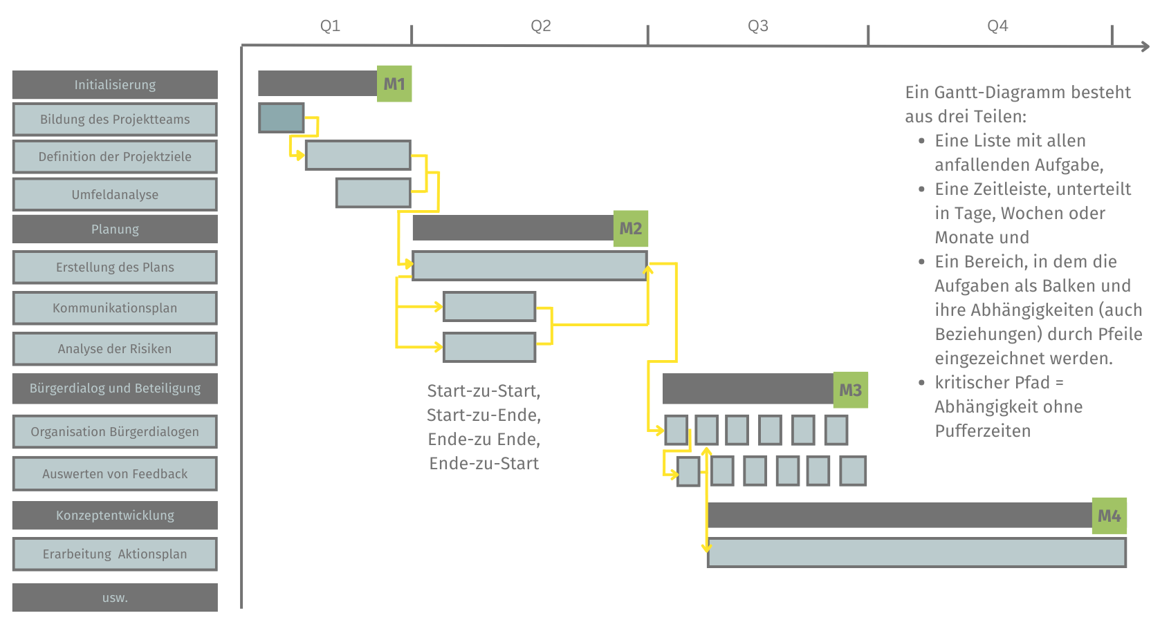 - Pufferzeiten einplanen und den kritischen Pfad besonders im Blick behalten.