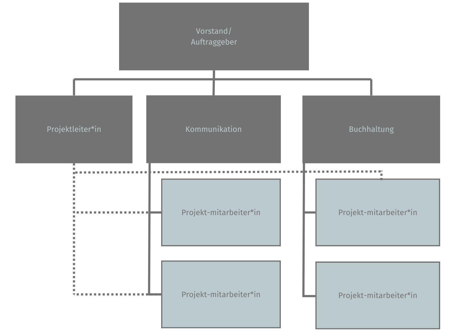 Neben dem Was und Wann muss im Projekt auch das Wer definiert werden. Je nach Größe und Struktur der NGO kommen verschiedene Projektorganisationsformen infrage: