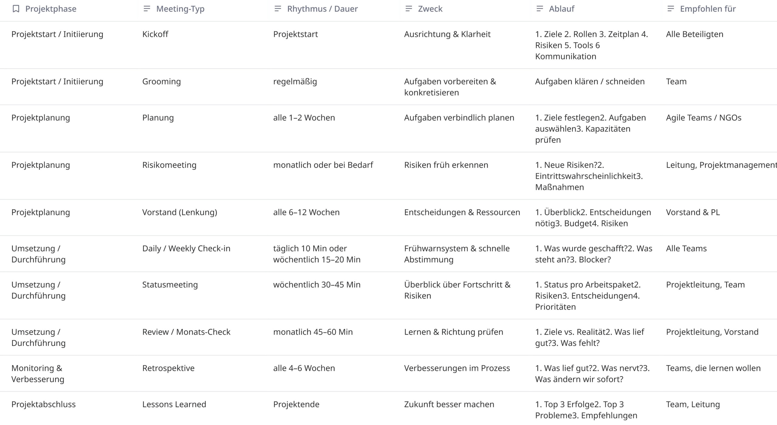 - Verbindlichkeit schaffen: Ein vereinbarter Meilensteinplan erhöht Fokus, Motivation und Verantwortlichkeit im Team.